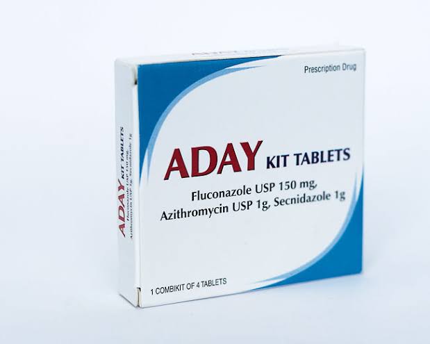 ADay kit is a combination therapy. It contains an antibiotic, antifungal and an antiprotozoal agent. It is mostly prescribed as an emergency prevention therapy against sexualy transmitted infections (STI). It is manufactured in India by The Madras Pharmaceuticals and marketed in Nigeria by Clarion Medicals.